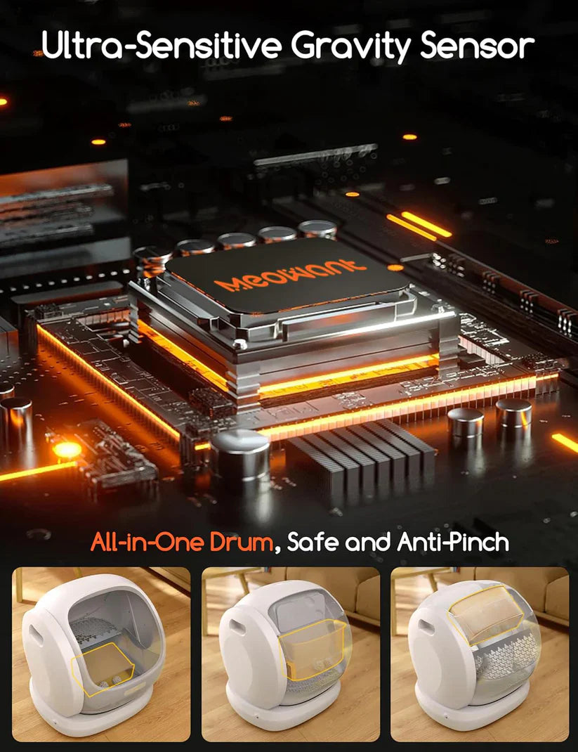 Anti-Pinch Technology: Prevents accidents and protects your cat during cleaning cycles.